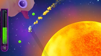 Durante o lançamento, você pode usar sua habilidade para corrigir a trajetória do coelho, usando o jetpack e a gravidade dos planetas.